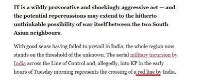 比如英国BBC的一篇评论文章就表示,印度昨天对巴基斯坦的空袭是两国自1971年的战争之后,印度空军首次越过克什米尔控制线进入巴基斯坦境内进行的空袭,所以此事的恶劣程度极为严重,甚至远高于双方地面人员的越境挑衅。