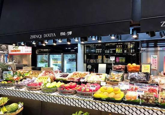 升级后的水果摊更像一个酒吧,吧台上摆满了琳琅满目的水果。