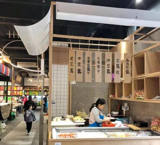 不到4㎡的豆腐铺,在红石板农贸市场里面积最小,墙面充分利用,做成格子来储物。