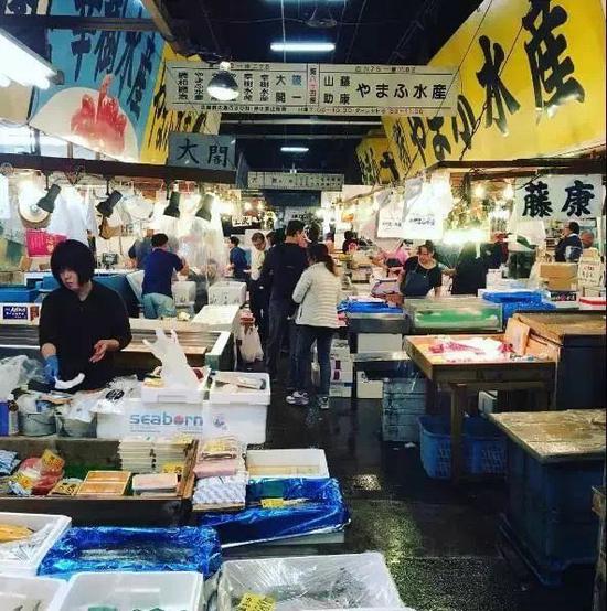 海鲜摊用的是造船车间的钢架、船木、帆布、篷布建起来的,因为最新鲜的海鲜一定是从刚打捞上渔船上才能买到。