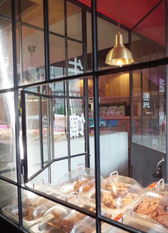 这是一家专卖熟食的温州黄牛馆,用玻璃隔断,通透无比。