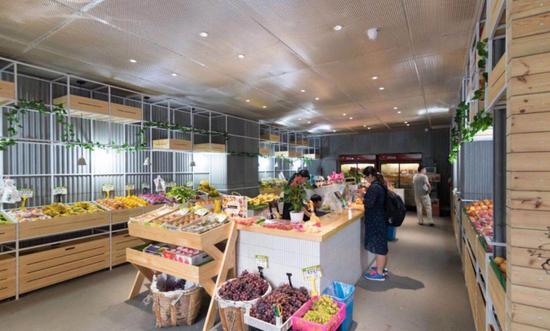 草山蔬菜店是士东市场的老字号,改造后色调统一自然,有一种书卷气,很有质感。