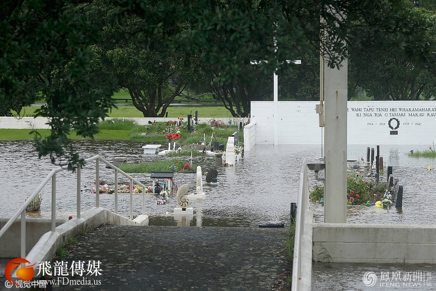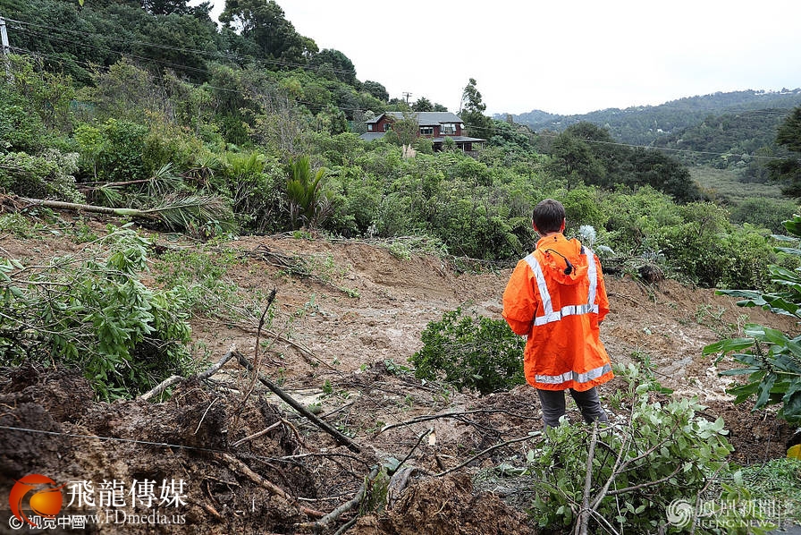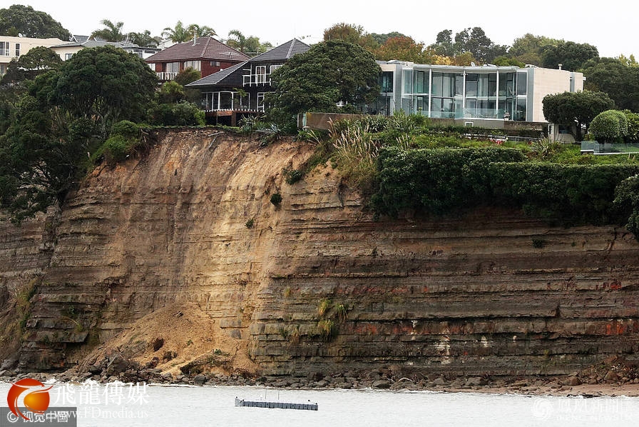 当地时间2017年4月5日,新西兰奥克兰,热带气旋“黛比”给当地带来强降雨,莎伦湾悬崖边石头滑落,居民住宅受损,部分花园掉入海中。
