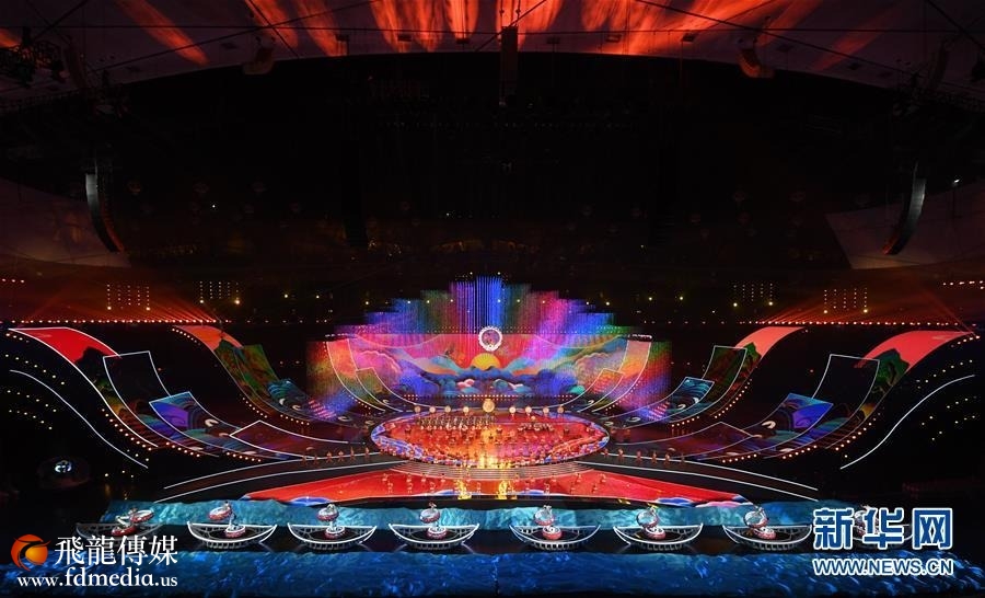 5月15日,亚洲文化嘉年华活动在北京“鸟巢”举行。这是打击乐《鼓舞飞扬 百舸竞渡》。 新华社记者 张晨霖 摄