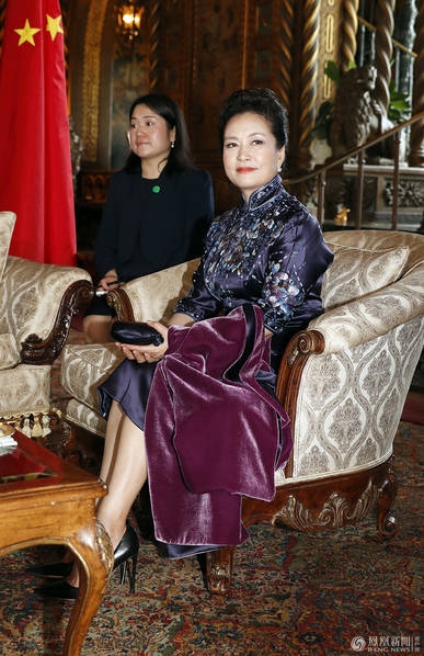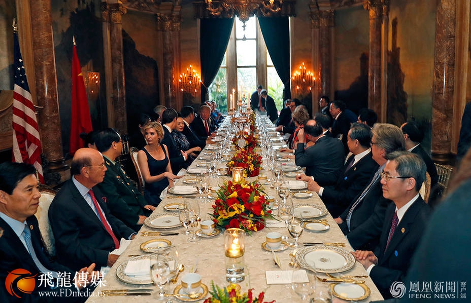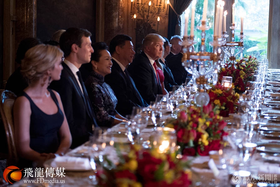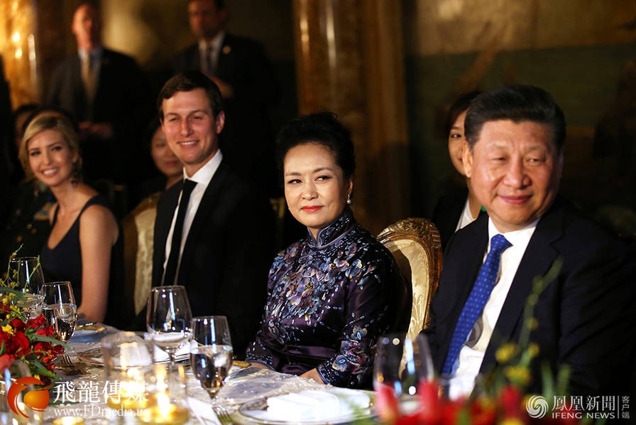 宴会上,伊万卡同丈夫坐在习近平与夫人彭丽媛旁。