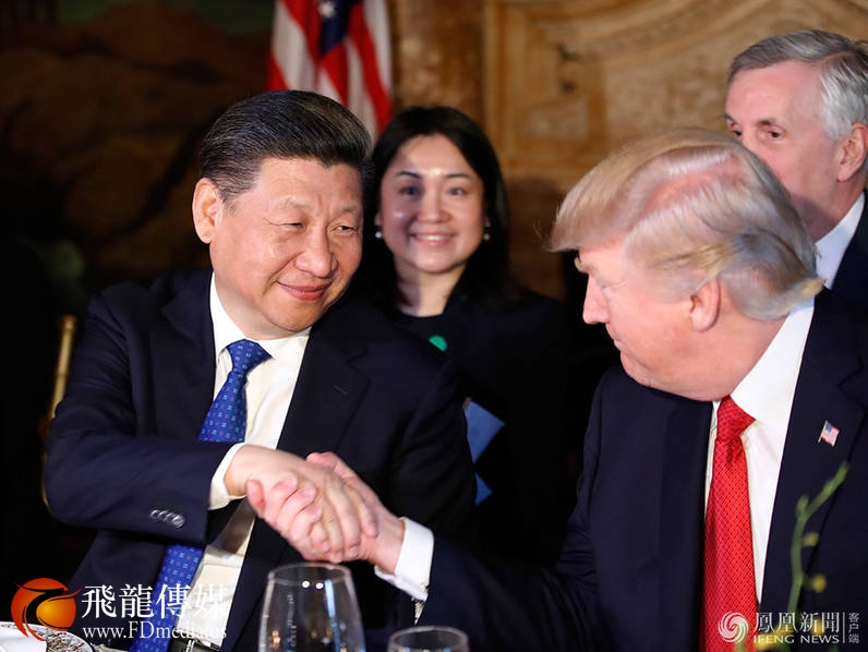 特朗普与习近平握手,欢迎习近平访美。