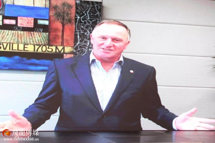 新西兰奥克兰市长 Phil Golf 视频祝贺(截图)。