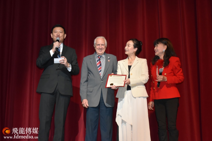 斯坦福市市长Cecil Willis, 市议员谭秋晴为徐利校长颁发市长令,宣布12月18日为”OAEC东方印象日”。