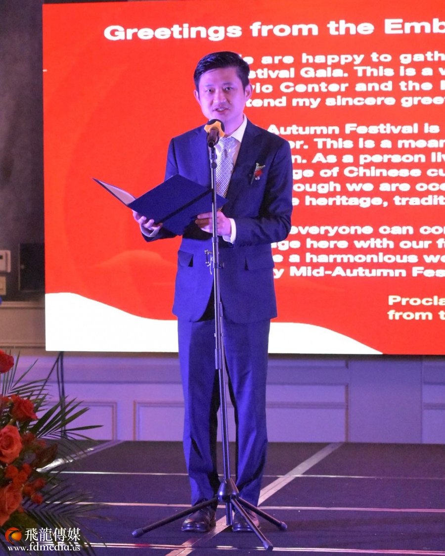 中国驻美大使馆祝笛总领事在晚宴上宣读了秦刚大使的贺词!并且带来了祖籍国对全体华侨华人的问候与祝福。