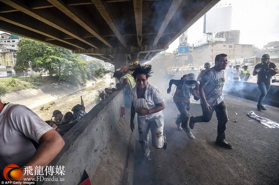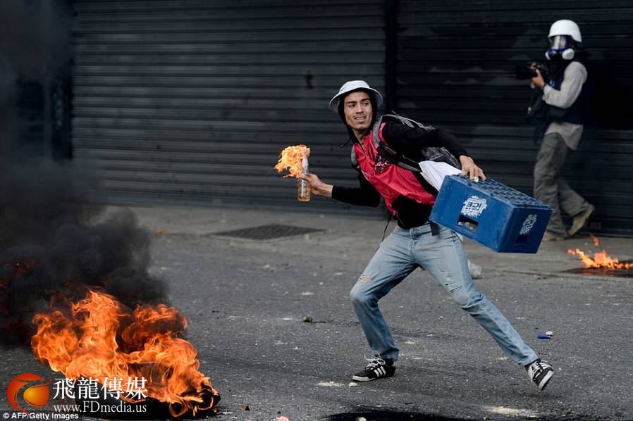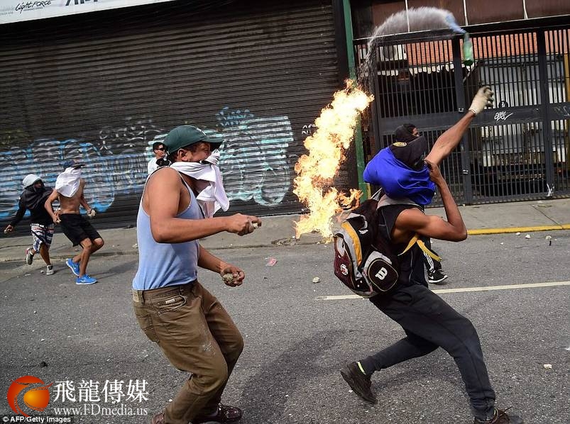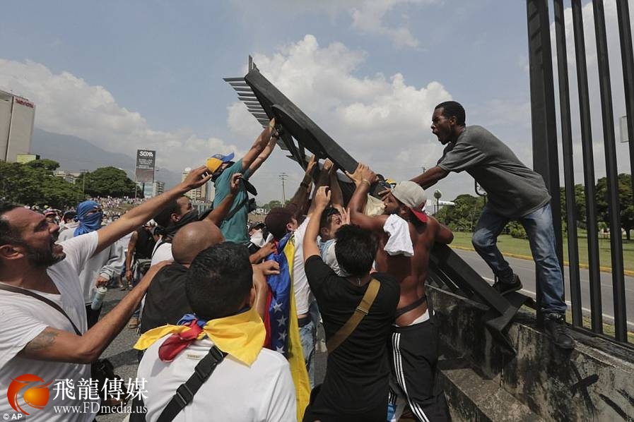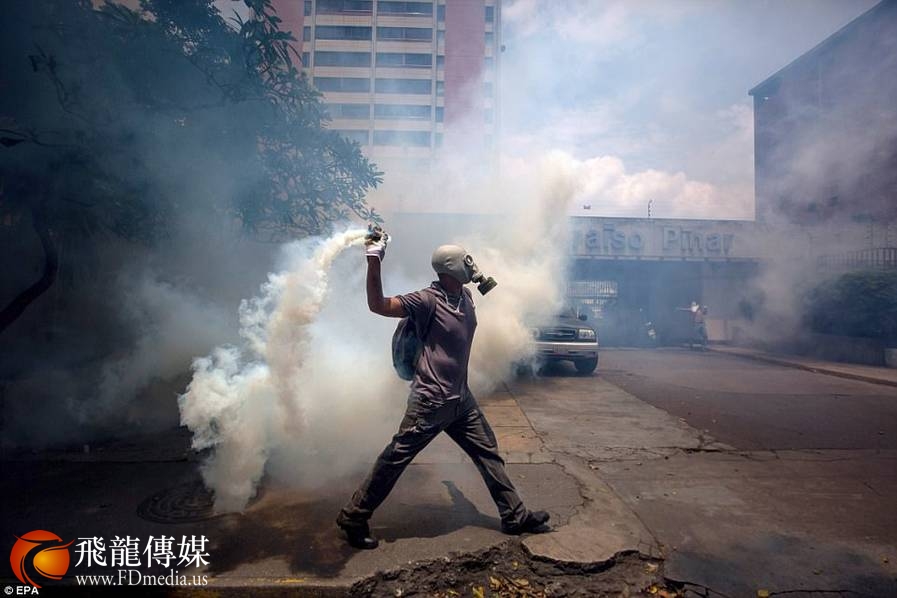 2017年4月20日报道,19日,委内瑞拉全国各地发生大规模示威,要求提前被囚禁反对派和举行总统选举,期间一名过路青年和一名女示威者中枪死亡。据悉,反对派指控政府指派亲马杜罗的不法之徒袭击示威者,军警袖手旁观。自4月初全国发生反政府示威后,死亡人数已增至7名。图为示威现场。