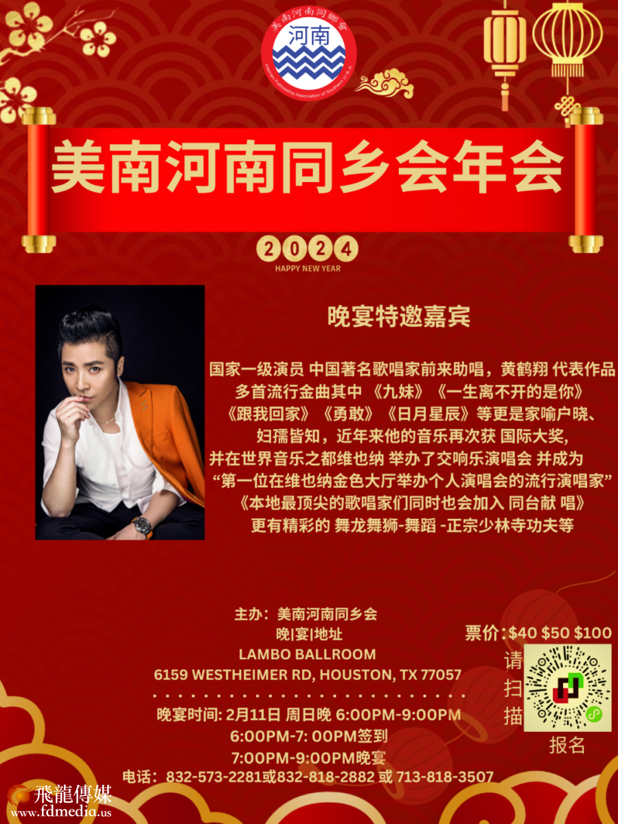 美南河南同乡会年会晚宴将于2024年2月11日(星期日),大年初二晚上 6:00PM-9:00PM,在 Lam Bo Ballroom 隆重举办。
