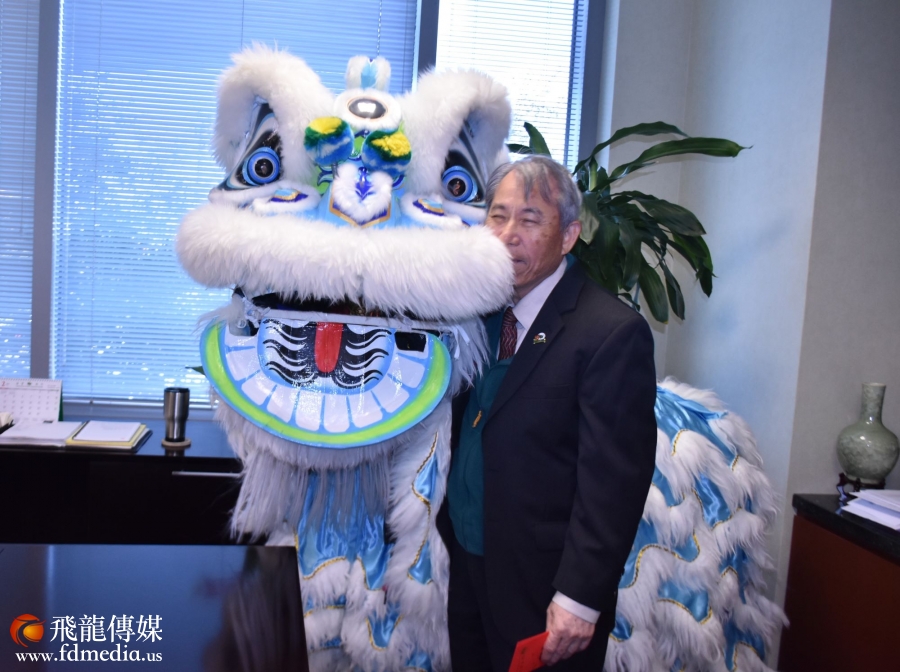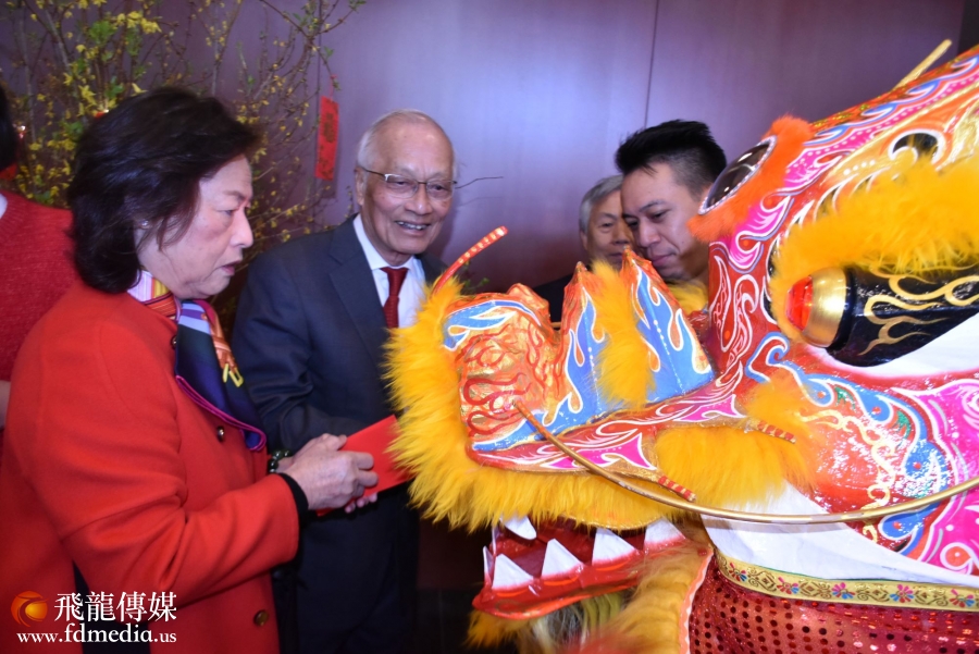 董事長吳文龍攜家人給華人拜年。