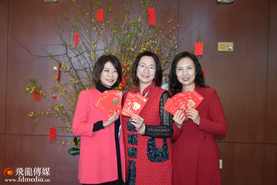 Chief lending officer Fion Chen、Monnie Mak、公共事務部經理周明潔給大家拜年。