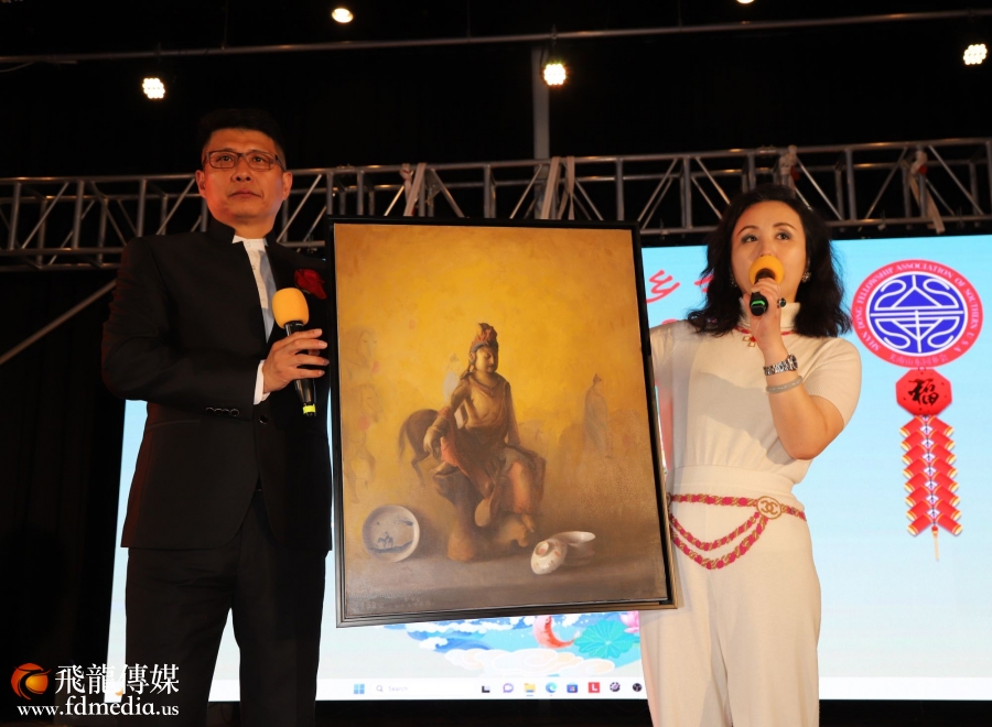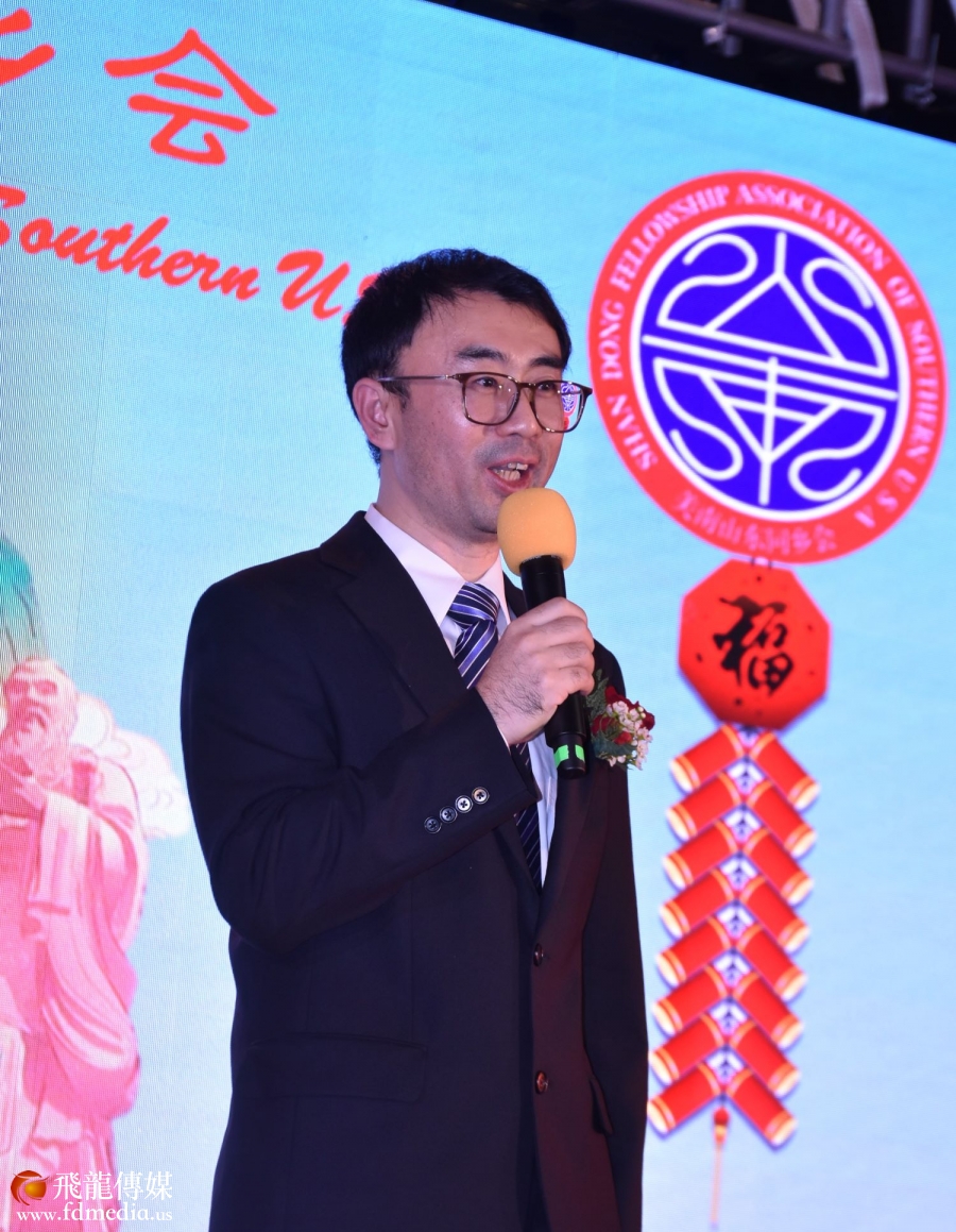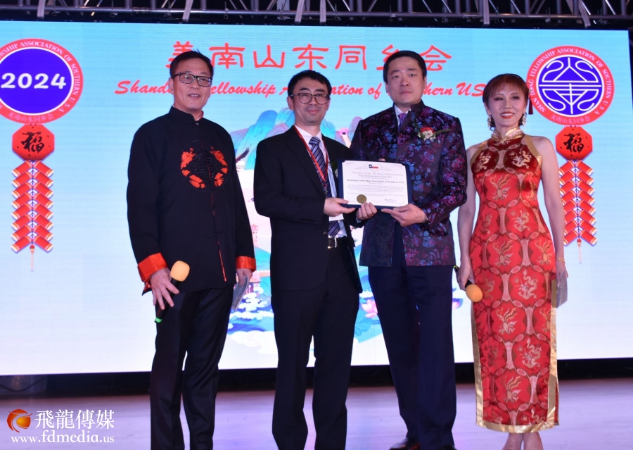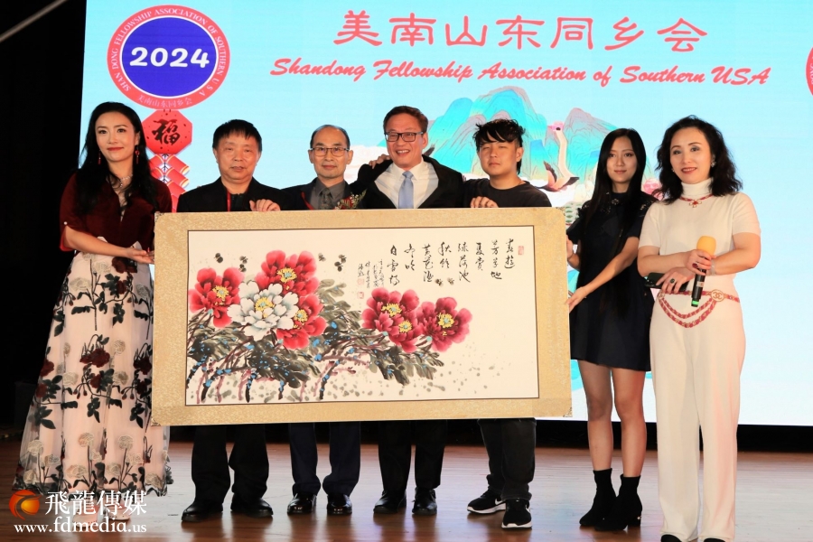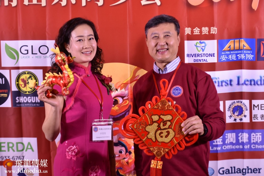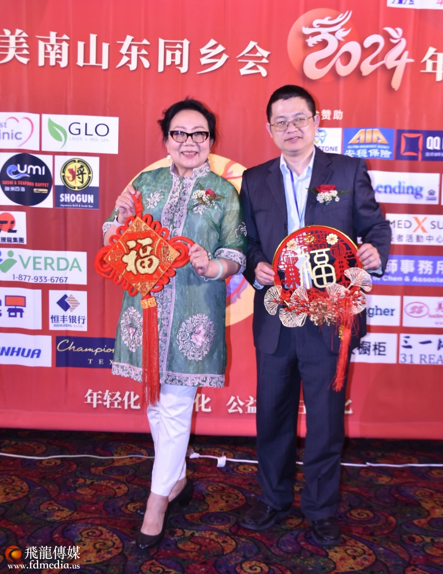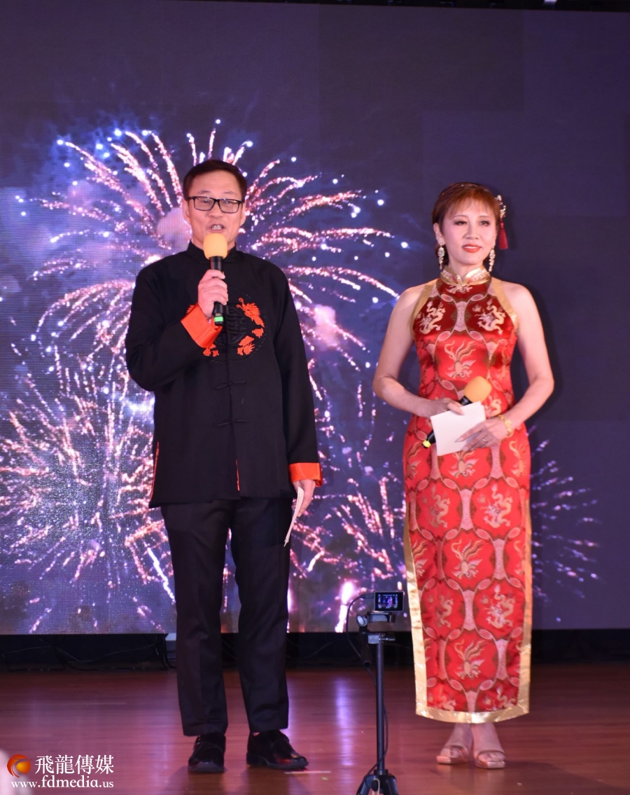 美南山东同乡会永久会长丰建伟和金话筒美琪主持。