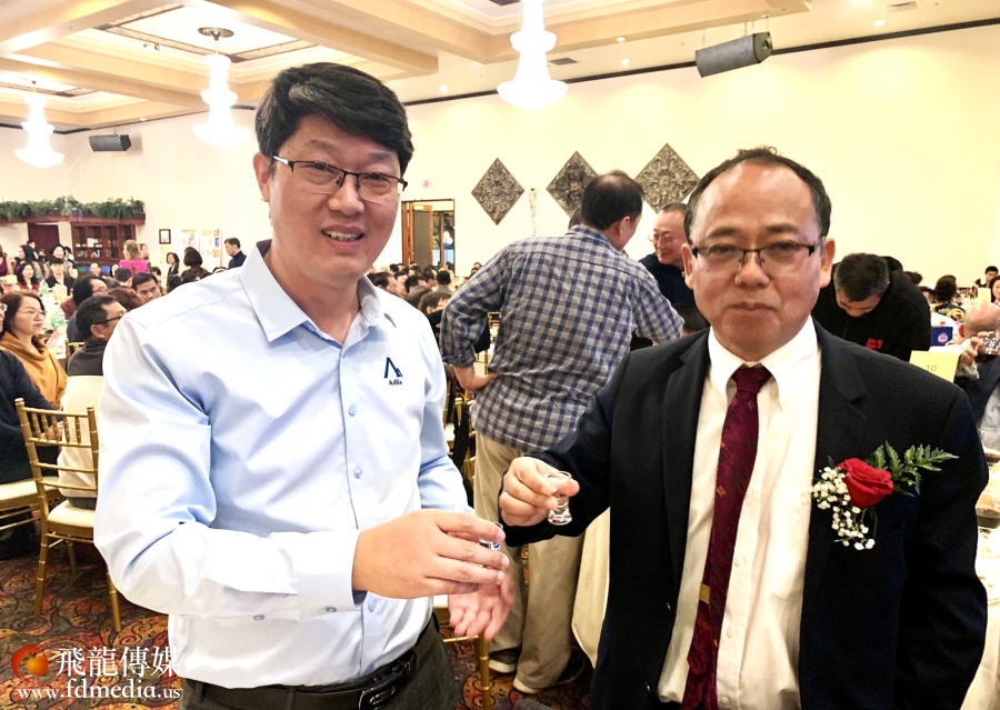 冠名赞助安迪拉公司负责人 刘建与韩亮会长举杯共饮,恭祝新年!