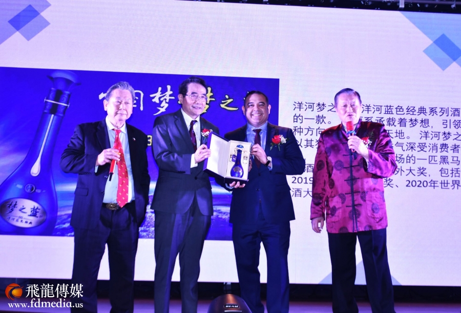 拍卖环节由邓润京和孙铁汉主持。第一个由江苏省明星企业洋河集团提供的《梦之蓝》名酒,由休斯顿第五区警长候选人Jerry Rodriguez拍得。