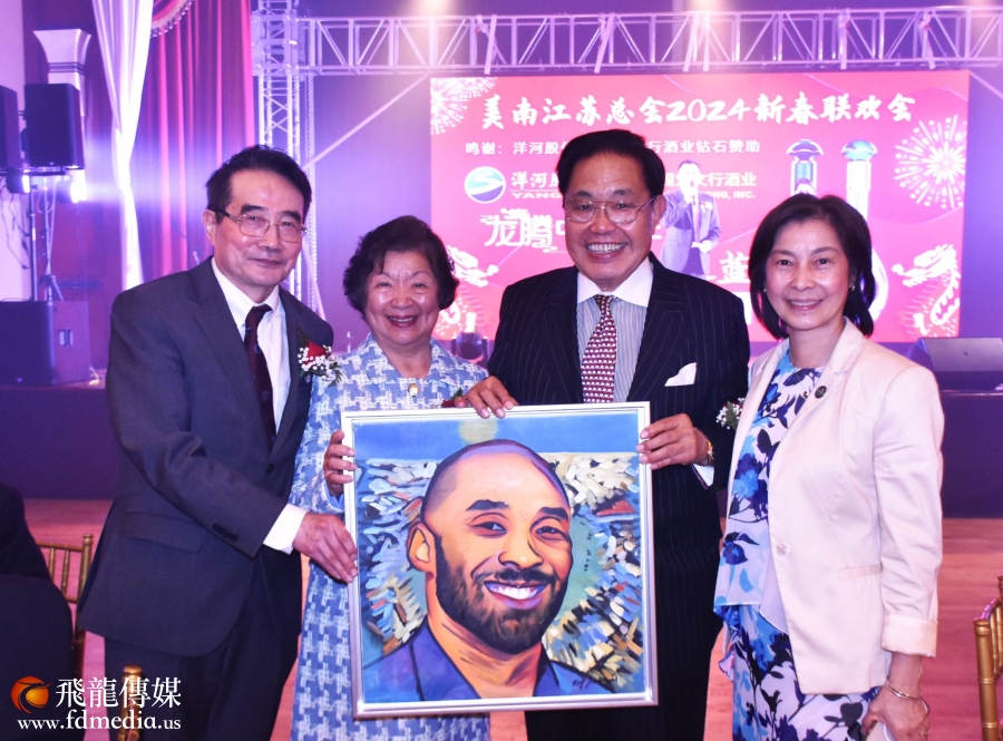 由著名画家蒋锐提供的球星科比的画像,被美南新闻董事长李蔚华拍得。