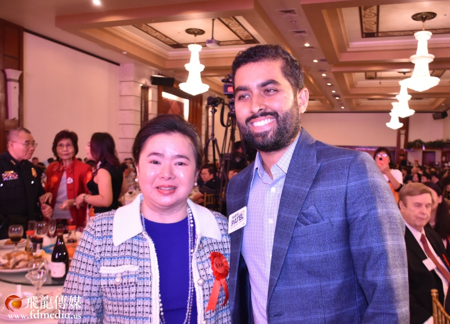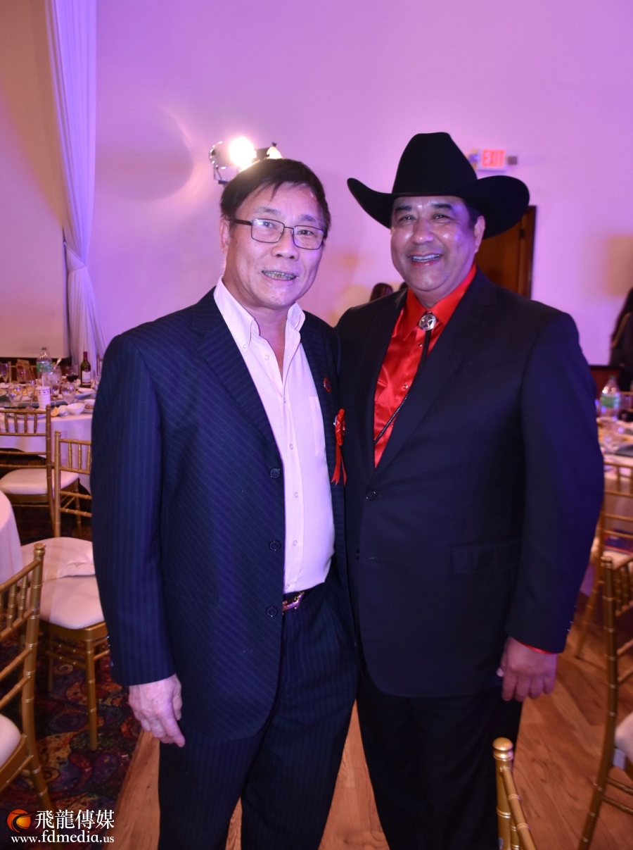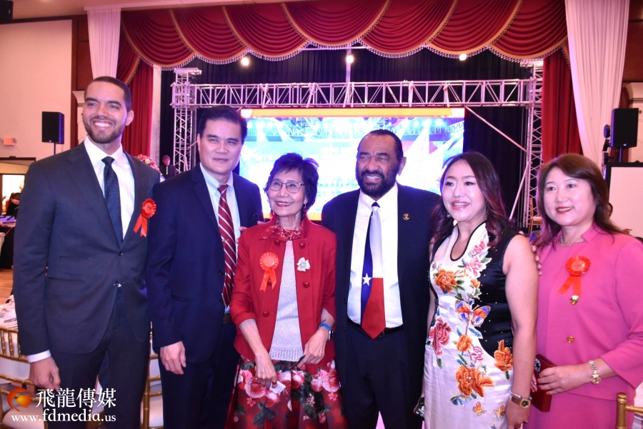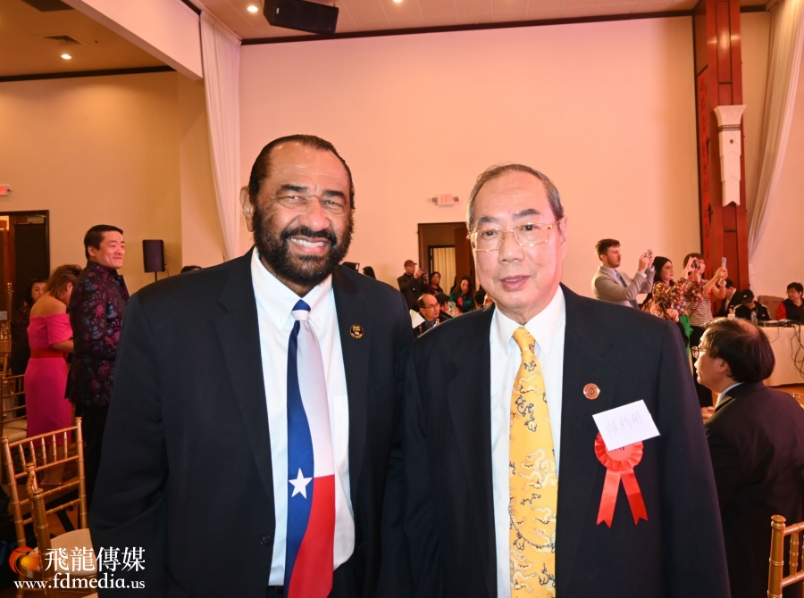 美国国会议员艾尔·格林(Al Green)与中国人活动中心前董事长陈灼刚合影。