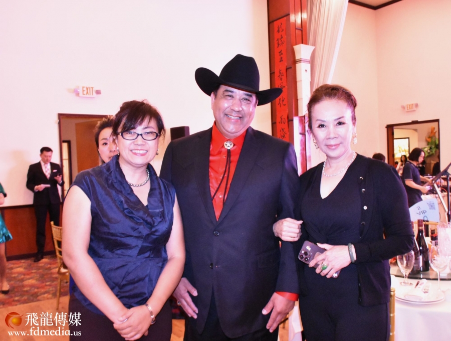 地产投资人Sandy Xu、第五区法官以色列.加西亚(lsrael B. Garcia, Jr. )、网络电视主持人裴习梅合影。