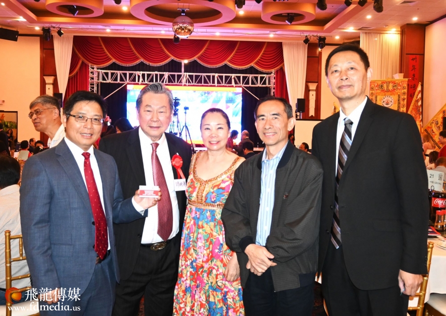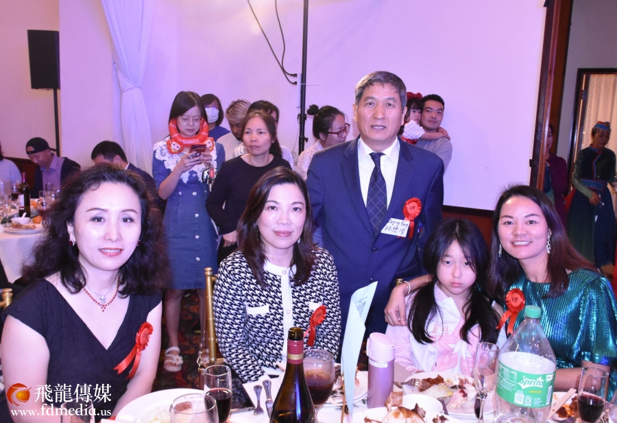 晚会赞助商著名企业家、地产投资人Serene Wong与福建同乡会会长陈贻亮,和小朋友们合影。