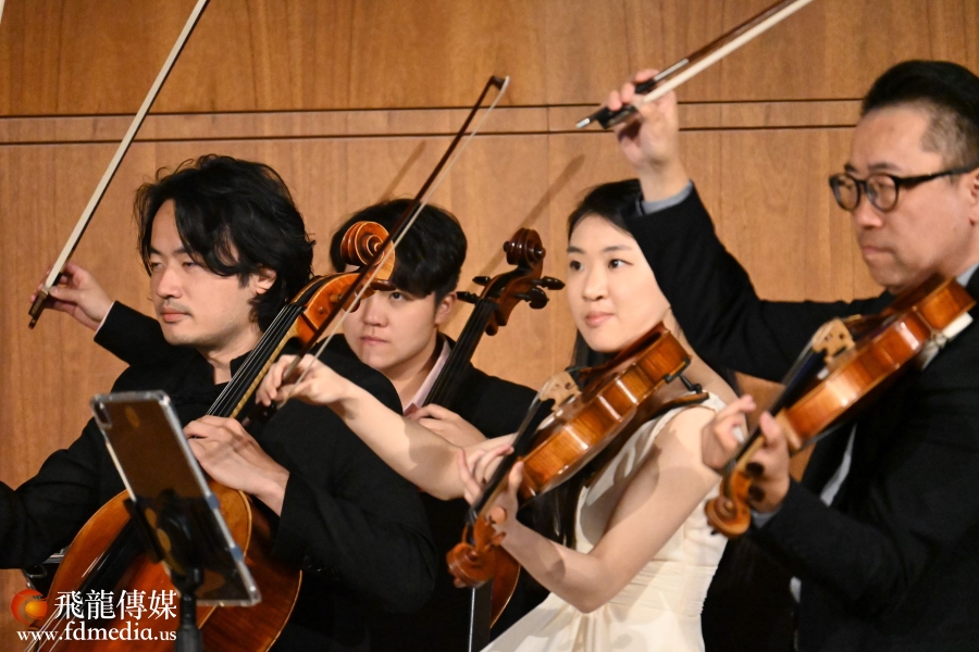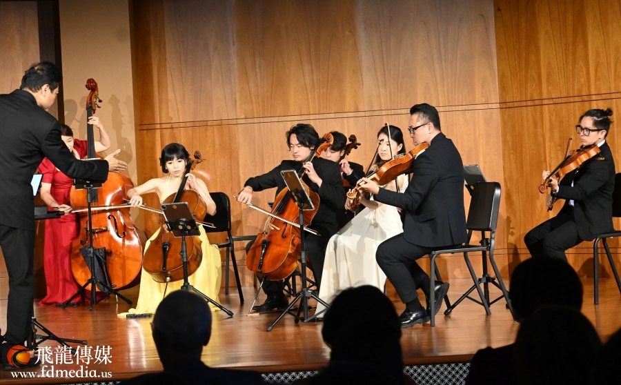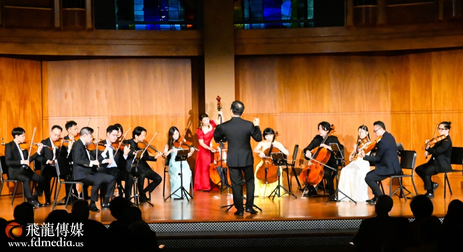 演出中那動人美妙的聲音時而像蟲鳴啾啾,時而像高山流水,響遍了整個音樂廳,每個人都陶醉其中。 演出的幾乎都是許多華人耳熟能翔的曲目,諸如“阿里山之歌” “小黃鷂鳥” “夜來香” “老橡樹上的黃絲帶” “月亮代表我的心”等,經過樂團大師們 的演奏,那悠揚的琴聲柔瀉而出,如緩緩縈回的溪流,又如夢境中朦朧的輕紗;美妙的旋律又如陣陣微風,不僅飄過了人們的耳邊,讓人如 痴如醉,而且還給人一種大地萬物煥然一新,猶如春天的細雨滋潤的感覺。