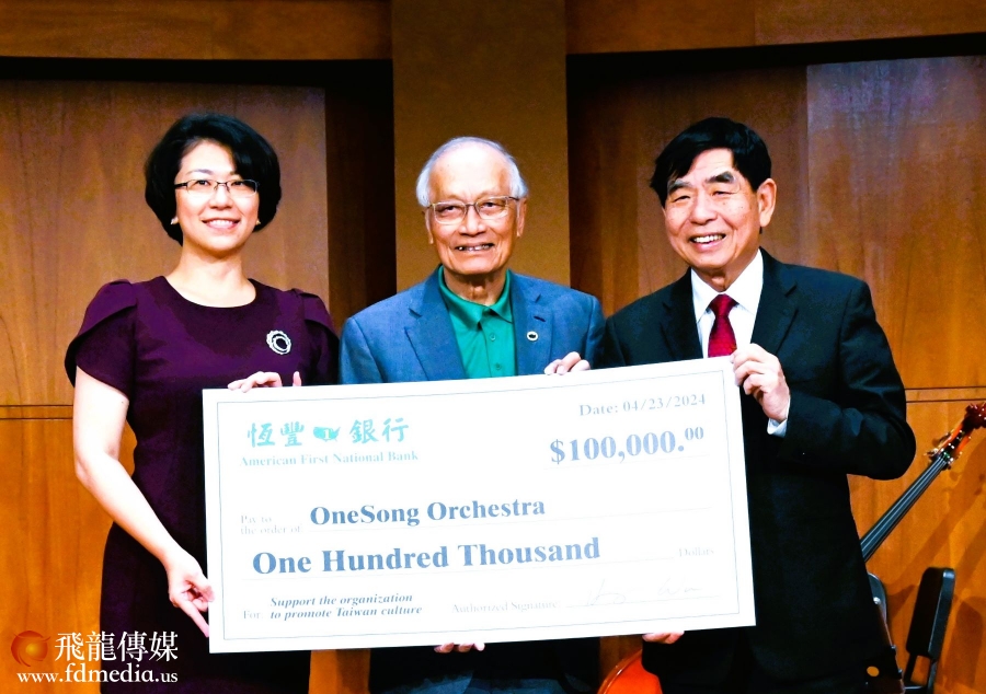 恆豐銀行董事長吳文龍代表恆豐銀行向灣聲樂團捐贈十萬美圓