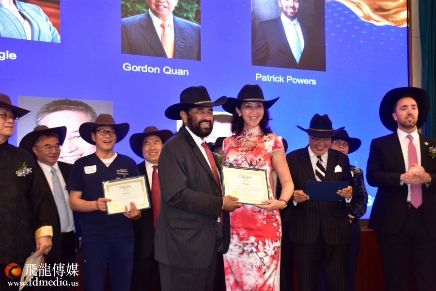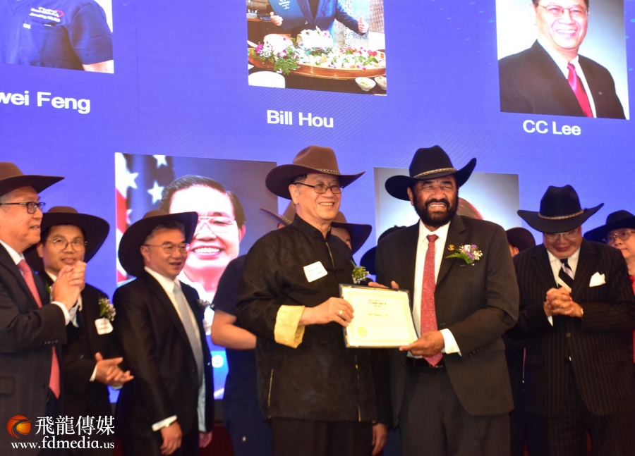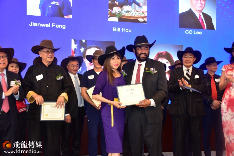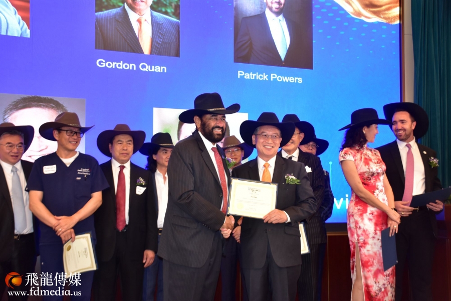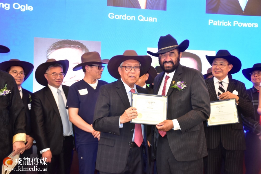 为特邀顾问前休斯顿市议员Gordon Quan颁发聘书