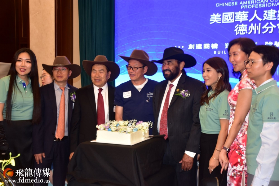 美国华人建筑公会德州分会创始团队切开蛋糕寓意开疆劈棘,前途无量。
