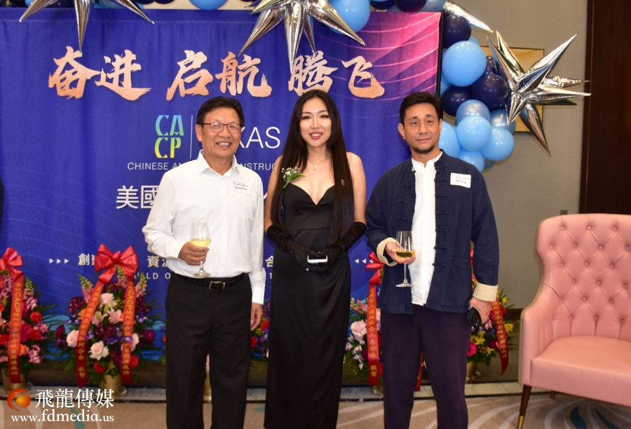 左起:著名房地产投资人Jay Willow、华人建筑公会全美总会主席姜晓东、执行长卿梅合影。
