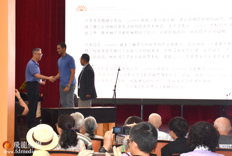 音乐会之后,美福基金会举行了特障儿童奖学金的颁奖仪式。今年的奖学金范围扩大,涵盖了有特殊需求、残障及心理健康问题的个人。喻斌与Chris Hollins共同为六名获奖者颁发奖项,总奖金超过1万美元。获奖者中,许多人因感动而泪洒现场,他们的努力和坚韧也深深感染了在场的每一位观众。
