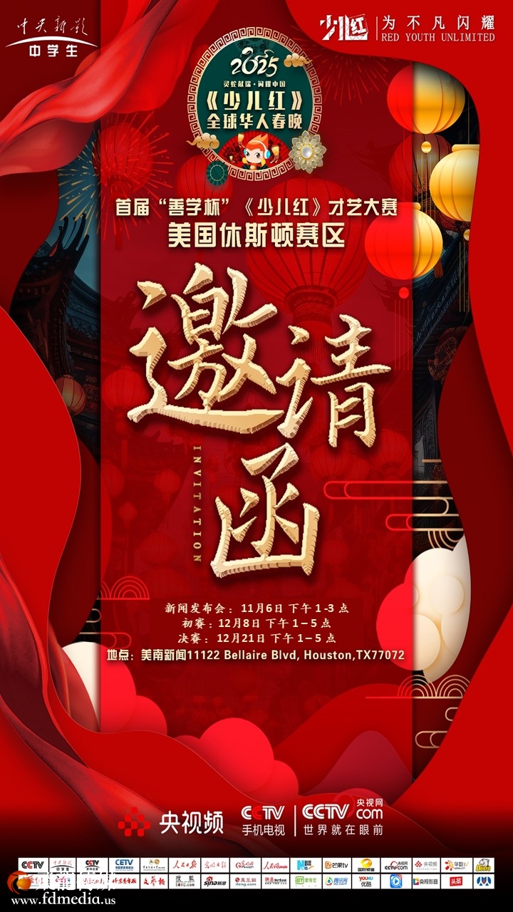 中央新影中学生频道《少儿红》栏目组授权善学中文学校主办休斯顿赛区大赛。