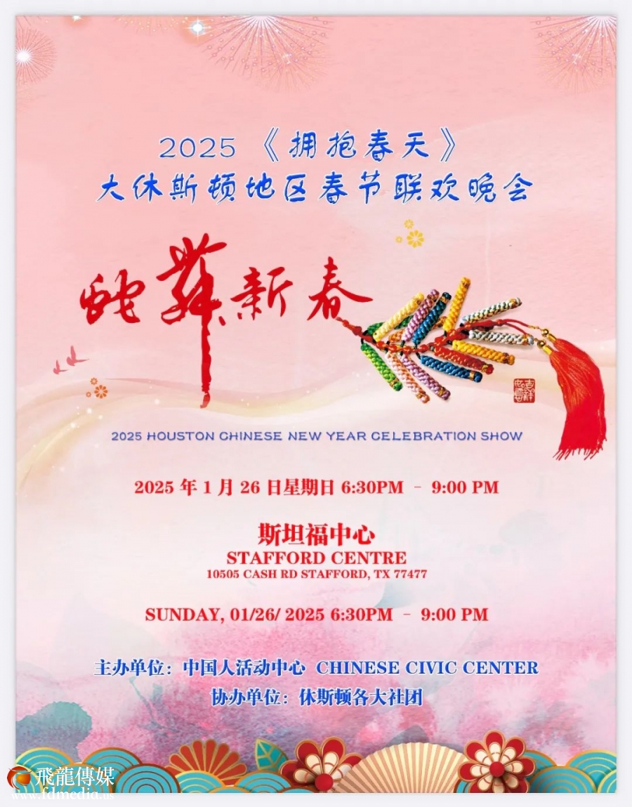 2025《拥抱春天》大休斯顿地区春节联欢晚会将于2025年1月26日晚六点半在 Stafford Centre 盛大举行。这将是《拥抱春天》的第13届春晚,今年的主题为“蛇舞新春”。蛇年,作为十二生肖之一,寓意灵活,智慧,优雅和坚韧。围绕这一主题,晚会将展现中国文化的深厚底蕴,传递文化的延续性与发展中的活力。