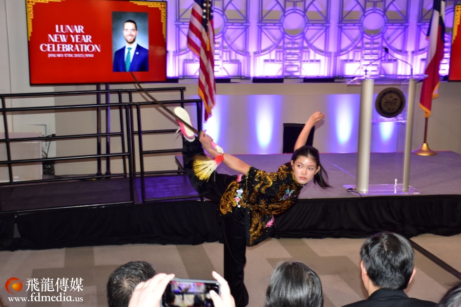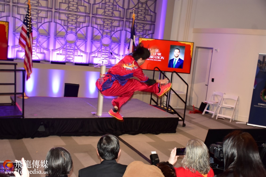 休斯敦少林文化中心应邀在活动上表演舞狮
