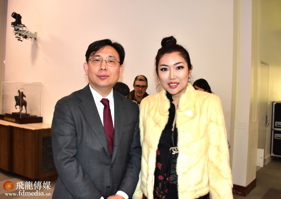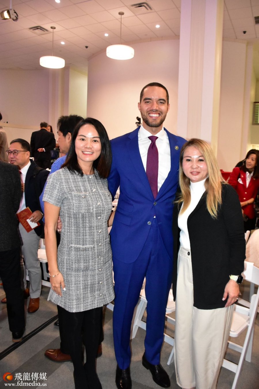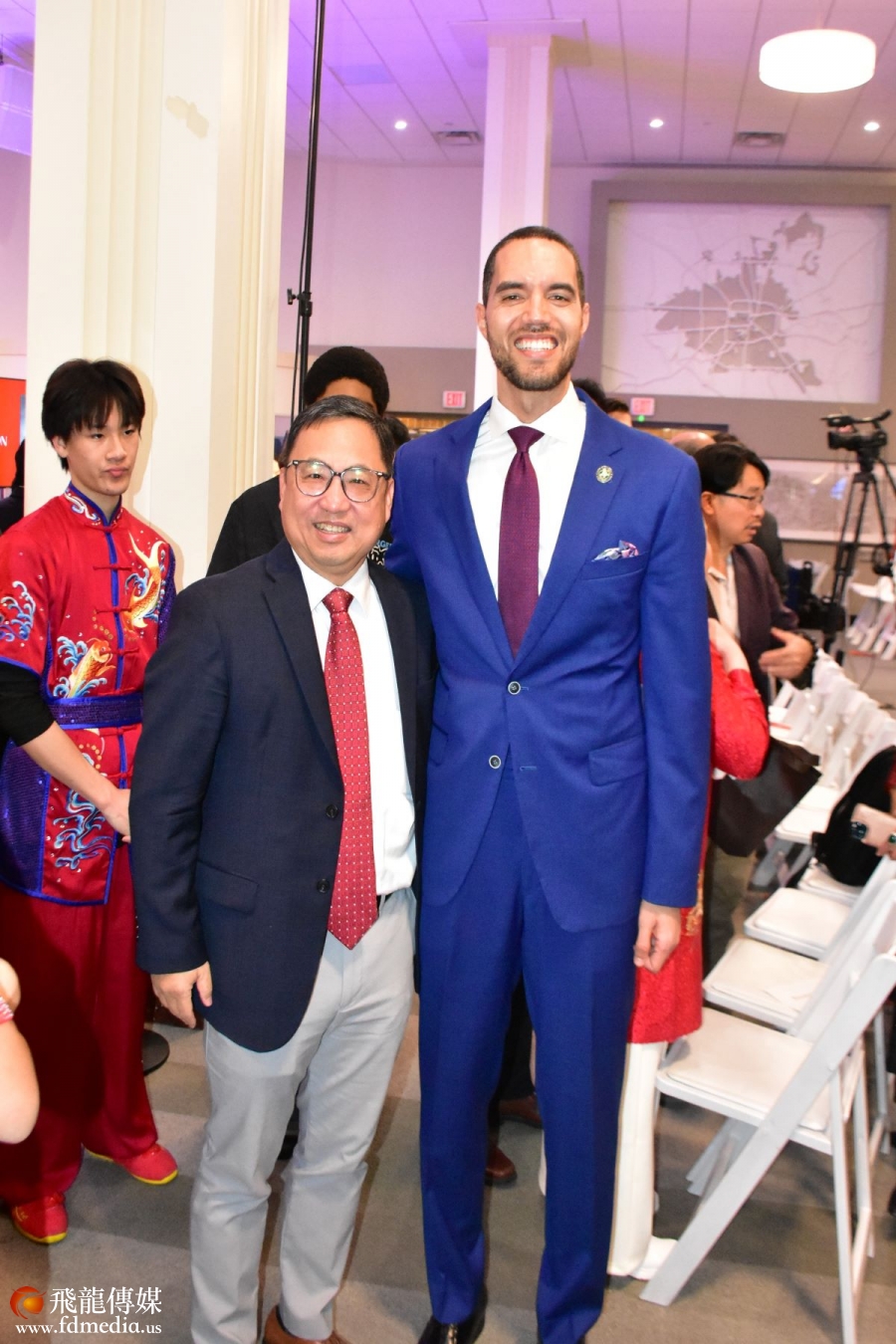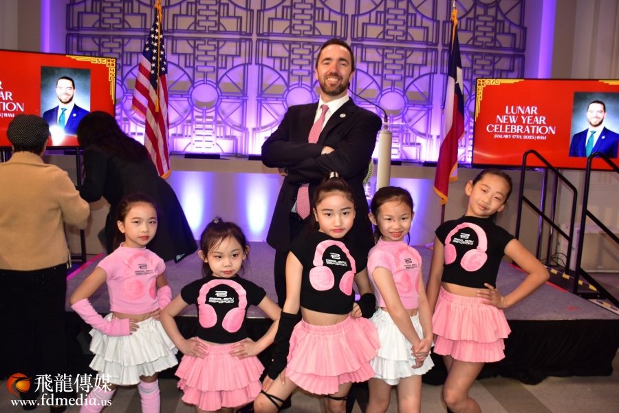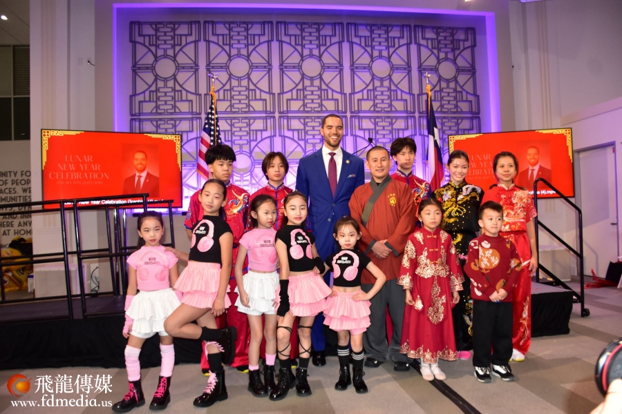 休斯敦审计长Chris Hollins给表演者发红包,并且合影留念。