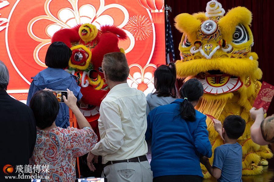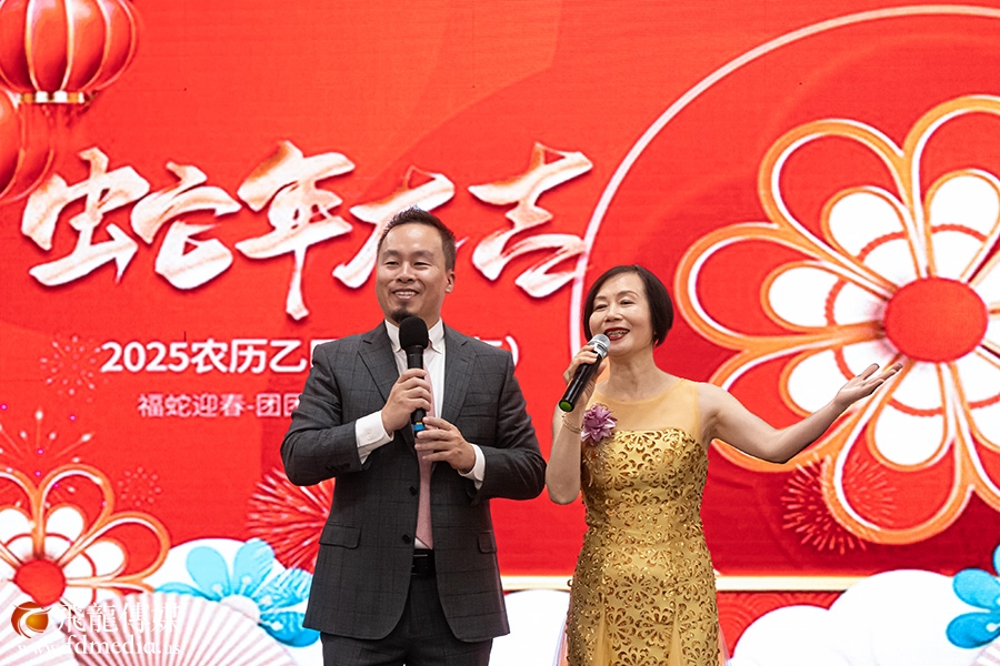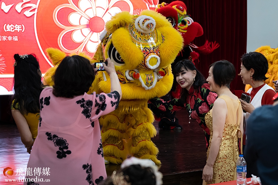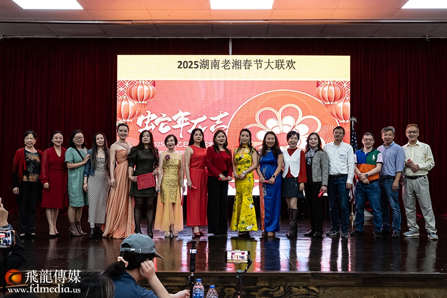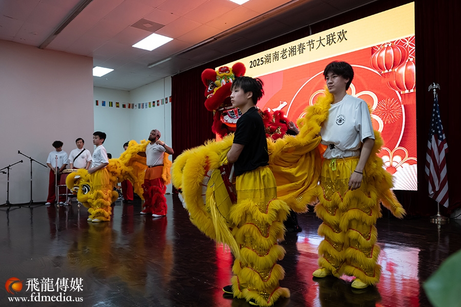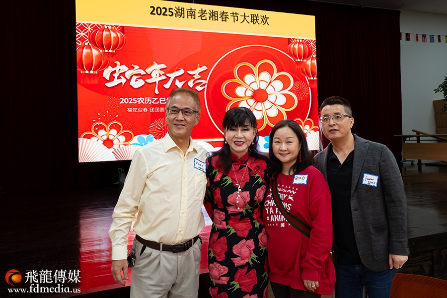 2月8日晚的美福阳光中心大厅一片辣椒红。一百多位休斯顿的湖南老湘亲齐聚一堂,在湘音湘味和欢笑中开启了蛇年休斯顿湖南同乡会湘味湘情春节大联欢。民以食为天。休斯顿湖南同乡会一贯将鉴赏湘味填饱肚子放在第一位。待所有人吃饱喝足,辣出汗来之后,少林寺文化中心的舞狮锣鼓正式敲响。三只狮子穿梭于舞台和饭桌之间,吃下了不少红包。