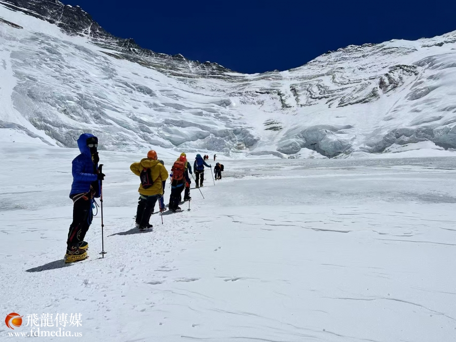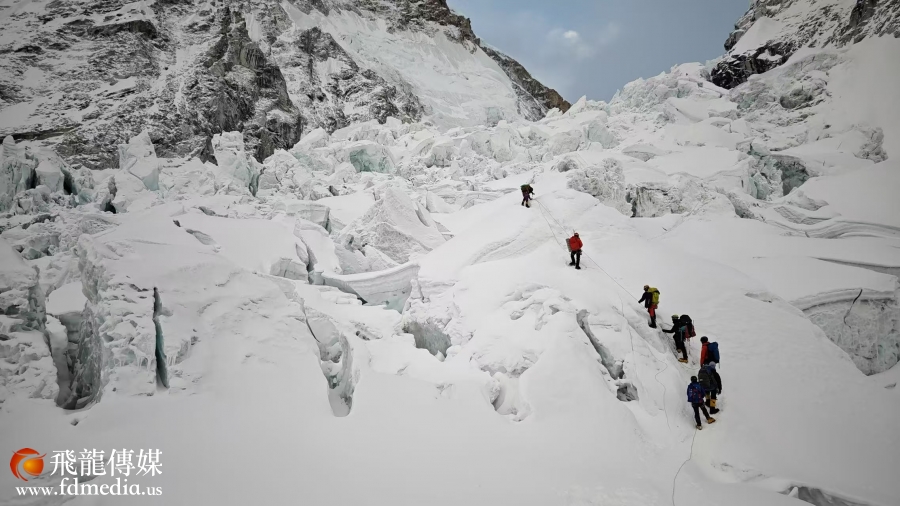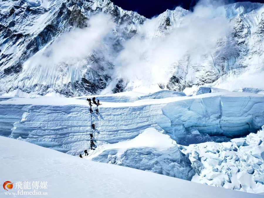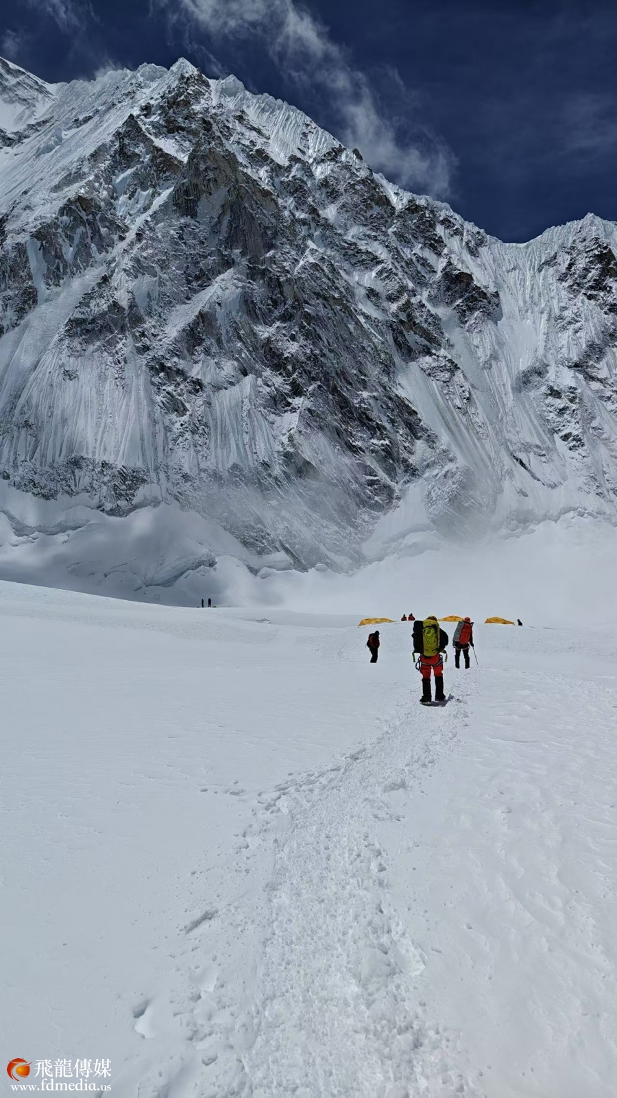 Lhotse 冰墙长达1125米,倾角在45度以上,有些地段超过80度。