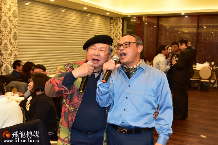 著名侨领孙铁汉、企业家James Luo高歌一曲,带起大家唱歌的热潮。