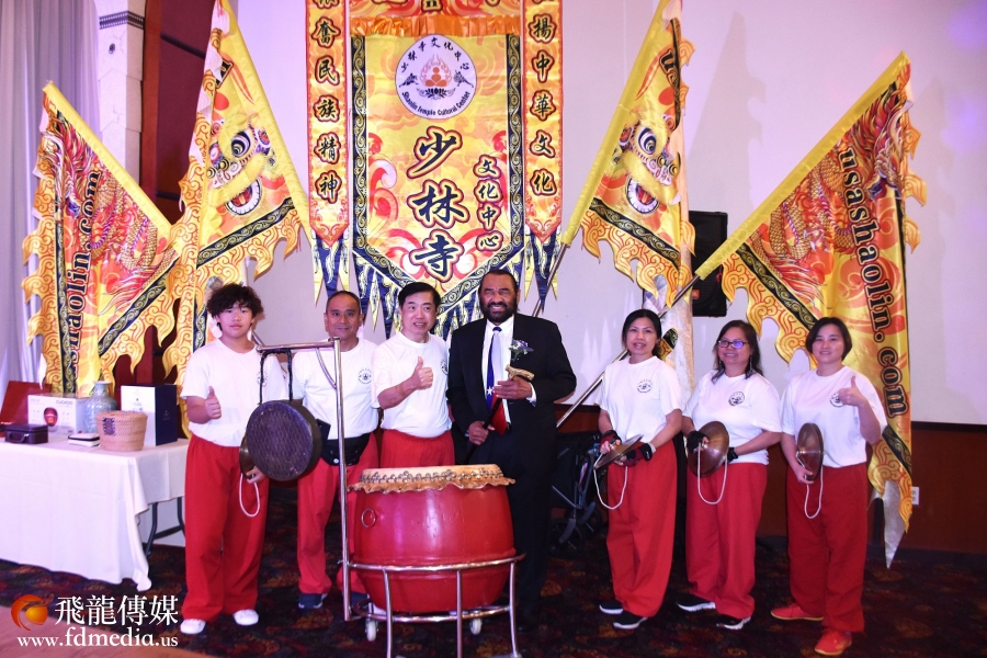 州议员吴元之(Gene Wu)致辞并带来褒奖状!会长钱广明、常务副会长Victoria Powers、常务副会长Jeff Gu上台领奖 。
