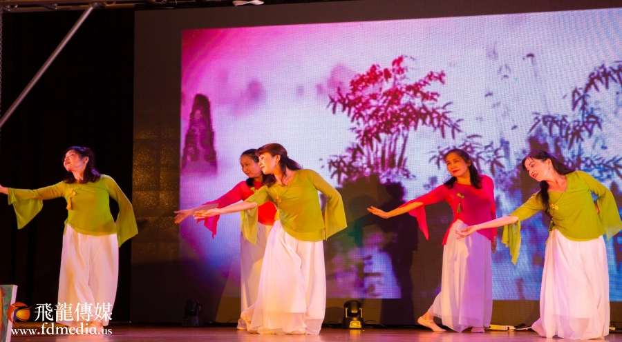 国会议员代表张晶晶致辞。会长钱广明、常务副会长Victoria Powers、常务副会长Jeff Gu上台合影。