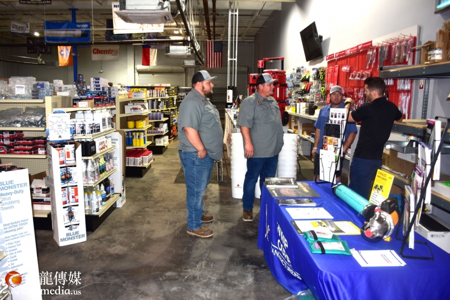 现场气氛热烈,光华建材的多家美国合作公司也派出代表前来支持,并设置产品展示台,让来宾近距离了解产品性能与服务优势。光华建材总裁George Gao特地从芝加哥飞抵休斯敦,亲自接待来宾,并带领大家参观展示厅及超五万平方英尺的仓库空间,展现公司雄厚的硬件实力。