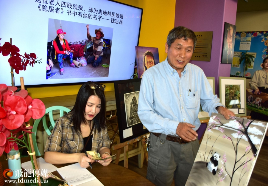 著名侨领杨德清支持活动,买了两幅“原作”作品。