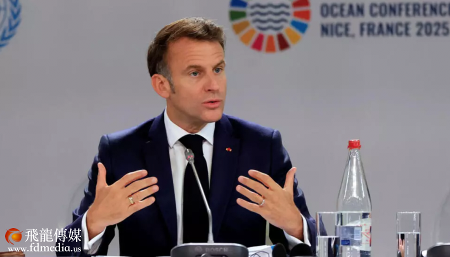 出席本次7国集团首脑峰会的法国总统马克龙在尼斯刚刚结束的联合国法海洋峰会上表示:“深海不是用来出售的,就像格陵兰岛不是用来出售的一样。” REUTERS - Manon Cruz