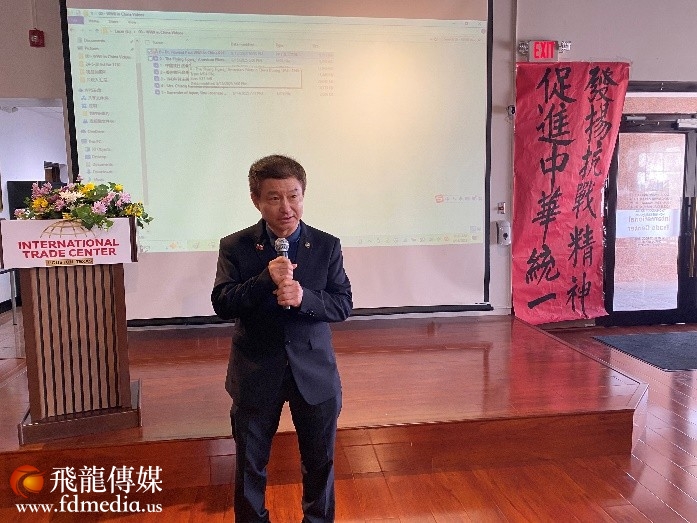 得州中国和平统一促进会会长浦浩德回顾了中国14年抗战的历史,并播放了与抗战相关的视频。他强调,由于中国为反法西斯战争做出的杰出贡献,列强的一千多条不平等条约被废除,历时75年的美国“排华法案”也被废止。全美中国和平统一促进会联合会共同会长及休斯顿中国和平统一促进会会长徐松焕特别感谢飞虎队为抗战所做出的牺牲,并展示了90年前抗战期间的宣传唱片和照片,他特别感谢美国对中国抗战的援助。美南报业集团董事长李蔚华生在战火纷飞的云南,从小饱受法西斯战争带来的颠沛流离之苦,他呼吁珍惜和平的年代,期望中美两个大国永远友好下去。90岁的全美华人协会前会长沈广强的父亲是抗战将领,在抗战胜利70周年时曾获得国家勋章。他期望两岸能够早日统一,中华民族走向更加辉煌的明天。