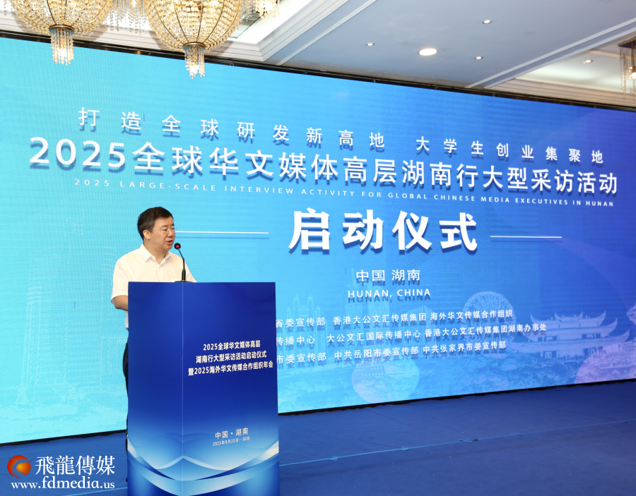 啟動儀式上,湖南省委宣傳部副部長、省政府新聞辦主任、省文明辦主任趙成新向採訪團授旗。8月26日至30日,海外華文傳媒合作組織的120人參會代表將分赴長沙、岳陽、張家界等地,以參觀考察、實地訪談等形式近距離了解湖南當地的經濟社會發展、風土人情和歷史傳統。本次採訪活動由湖南省委宣傳部主辦,海外華文傳媒合作組織和香港大公文匯傳媒集團聯合主辦。