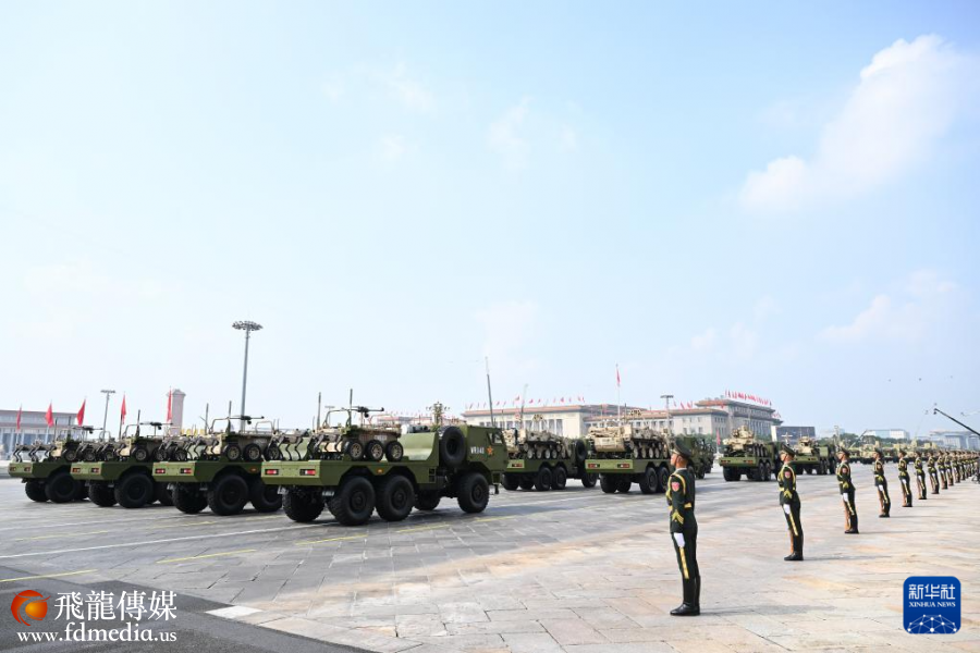 9月3日,纪念中国人民抗日战争暨世界反法西斯战争胜利80周年大会在北京隆重举行。这是陆上无人作战方队接受检阅。新华社记者 杨冠宇 摄