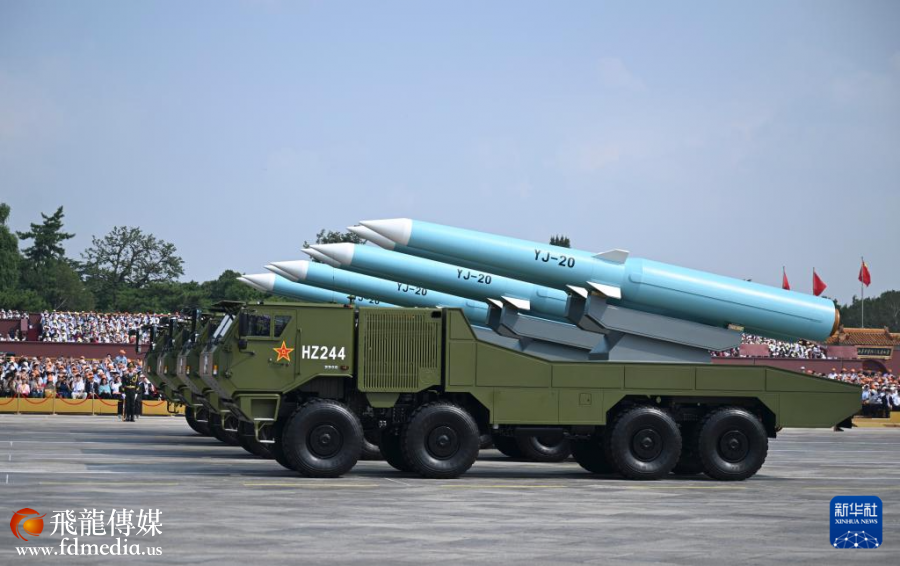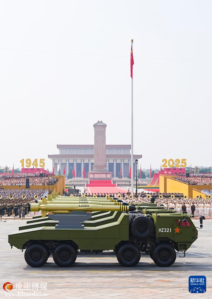 9月3日,纪念中国人民抗日战争暨世界反法西斯战争胜利80周年大会在北京隆重举行。这是反舰导弹方队接受检阅。新华社记者 刘勇贞 摄