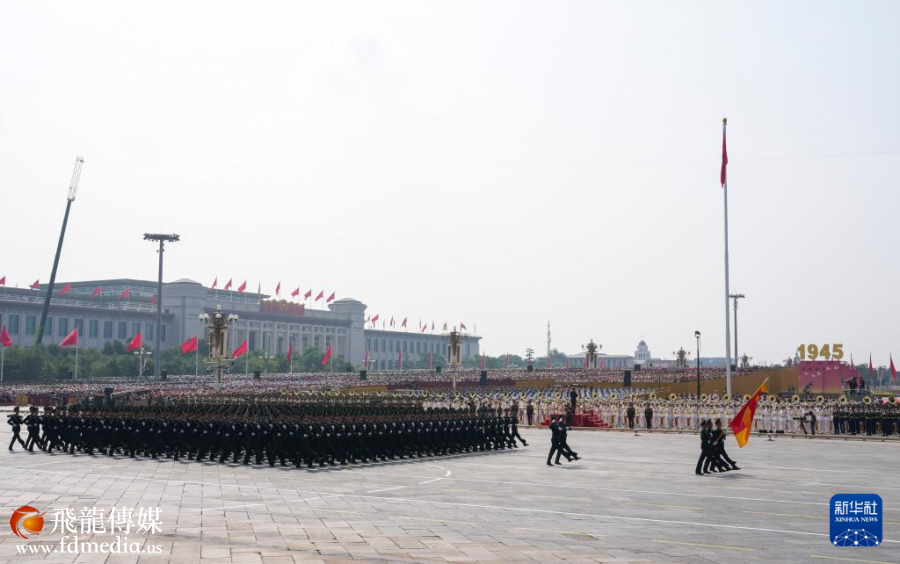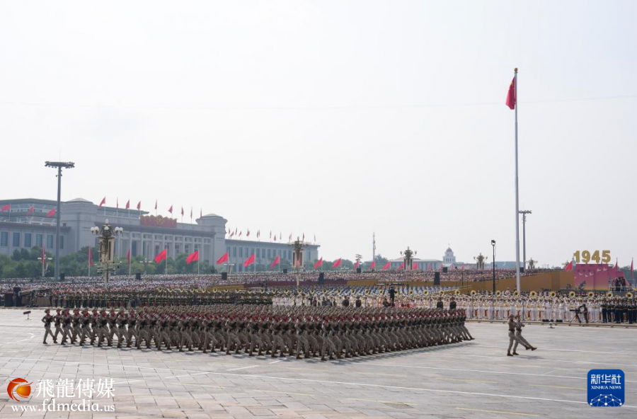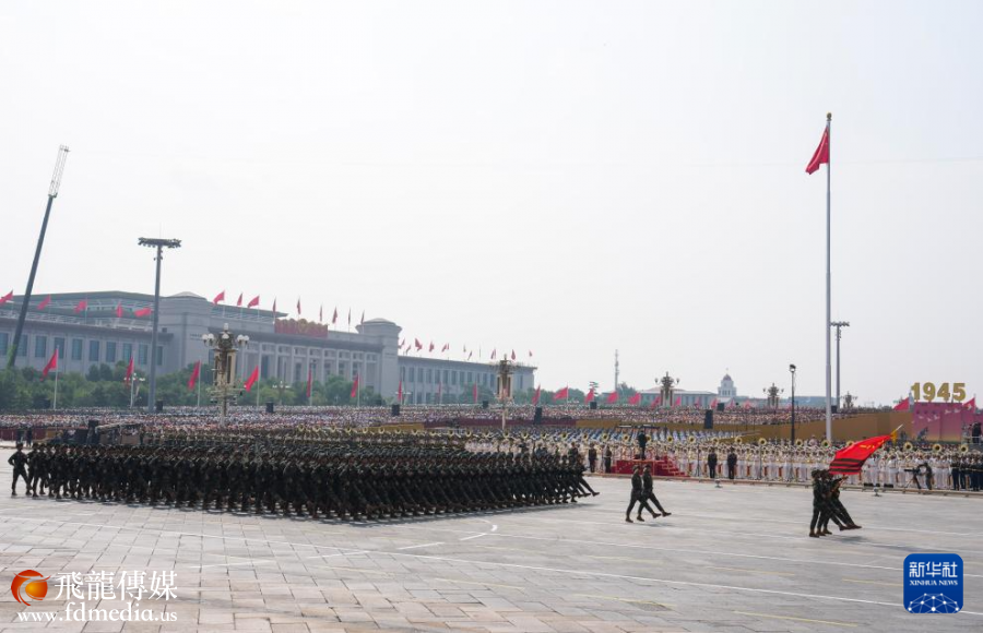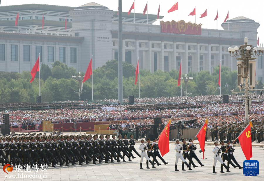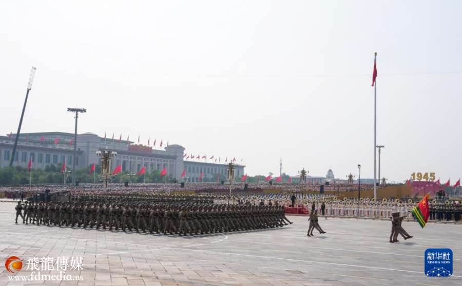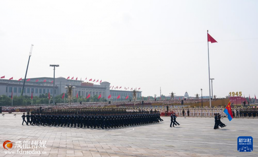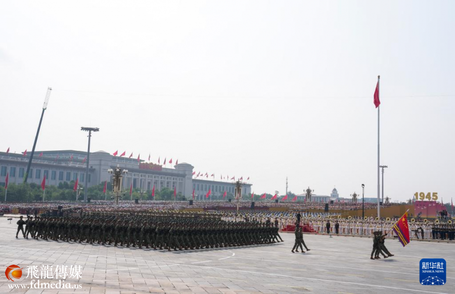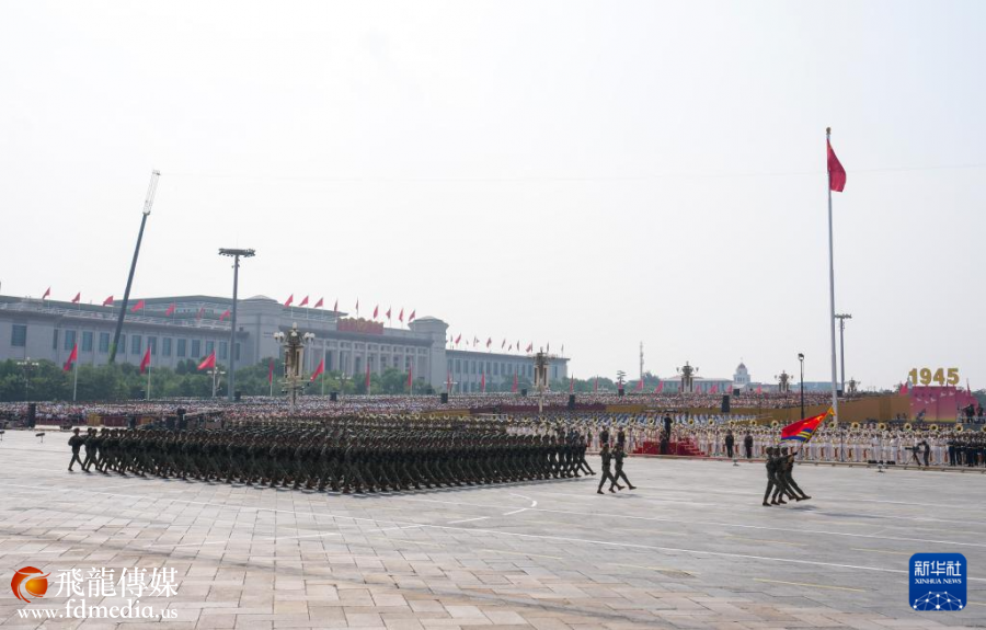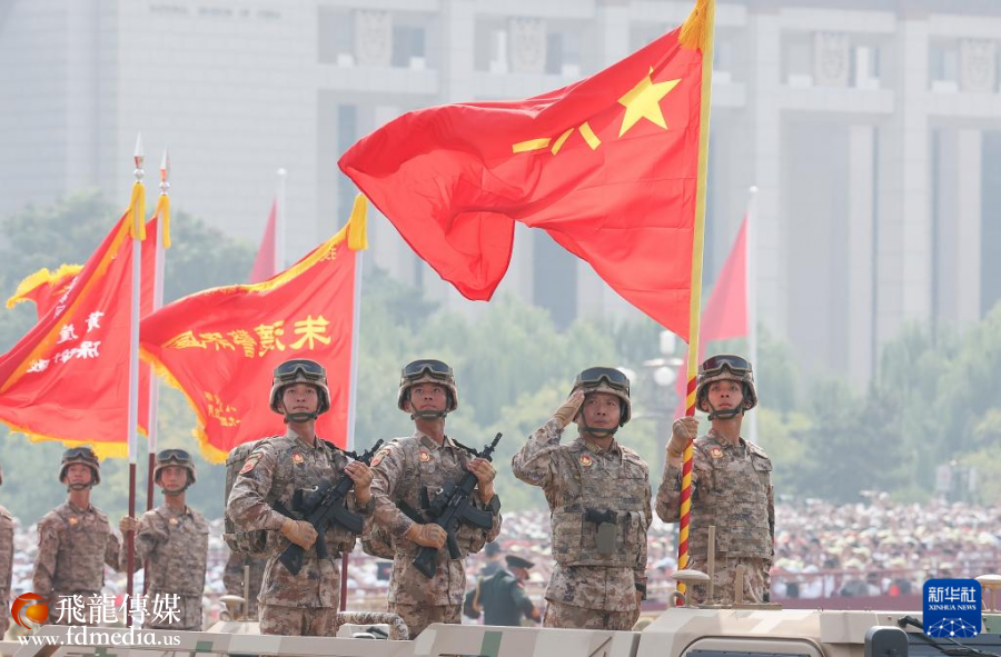 9月3日,纪念中国人民抗日战争暨世界反法西斯战争胜利80周年大会在北京隆重举行。这是战旗方队接受检阅。新华社记者 胡智轩 摄