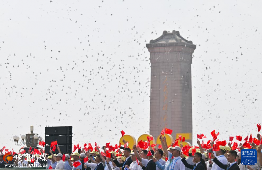 9月3日,纪念中国人民抗日战争暨世界反法西斯战争胜利80周年大会在北京隆重举行。这是纪念大会现场放飞和平鸽。新华社记者 杨冠宇 摄