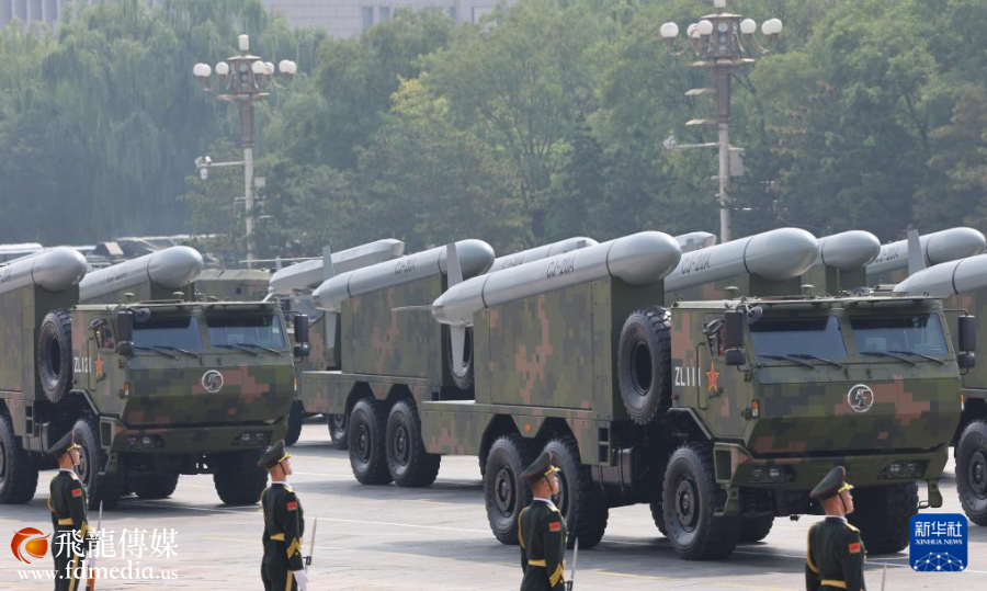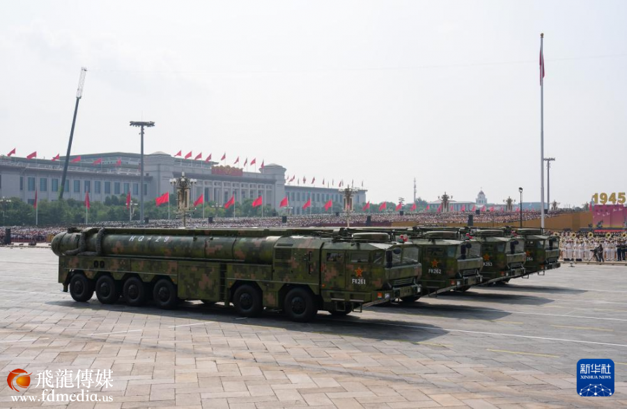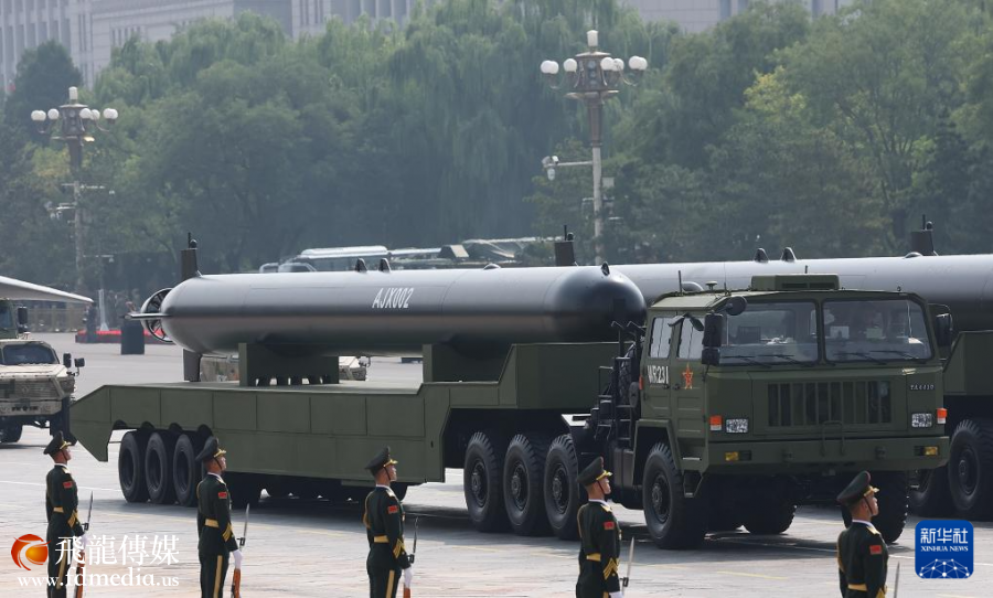 9月3日,纪念中国人民抗日战争暨世界反法西斯战争胜利80周年大会在北京隆重举行。这是高超声速导弹方队接受检阅。新华社记者 刘勇贞 摄