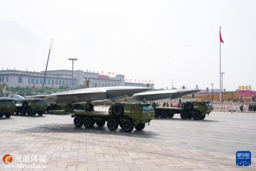 9月3日,纪念中国人民抗日战争暨世界反法西斯战争胜利80周年大会在北京隆重举行。这是空中无人作战方队接受检阅。新华社记者 鞠焕宗 摄